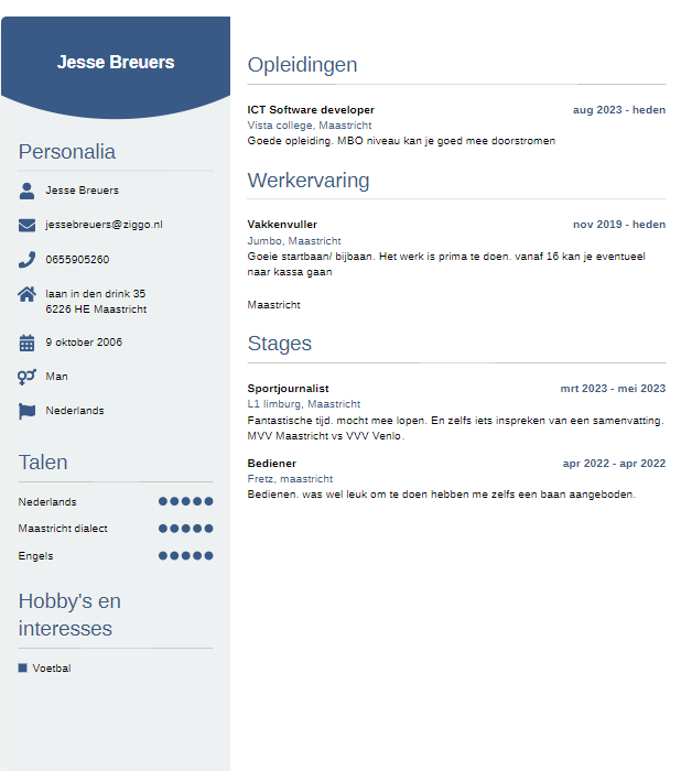 Op deze Portfolio kun je mijn beste projecten zien, je kunt nieuwe projecten uploaden, én je kunt mijn cv zien.